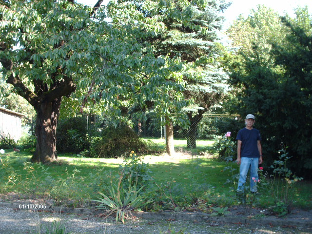 | Bewohner Uwe vor unseren Kirschbäumen |